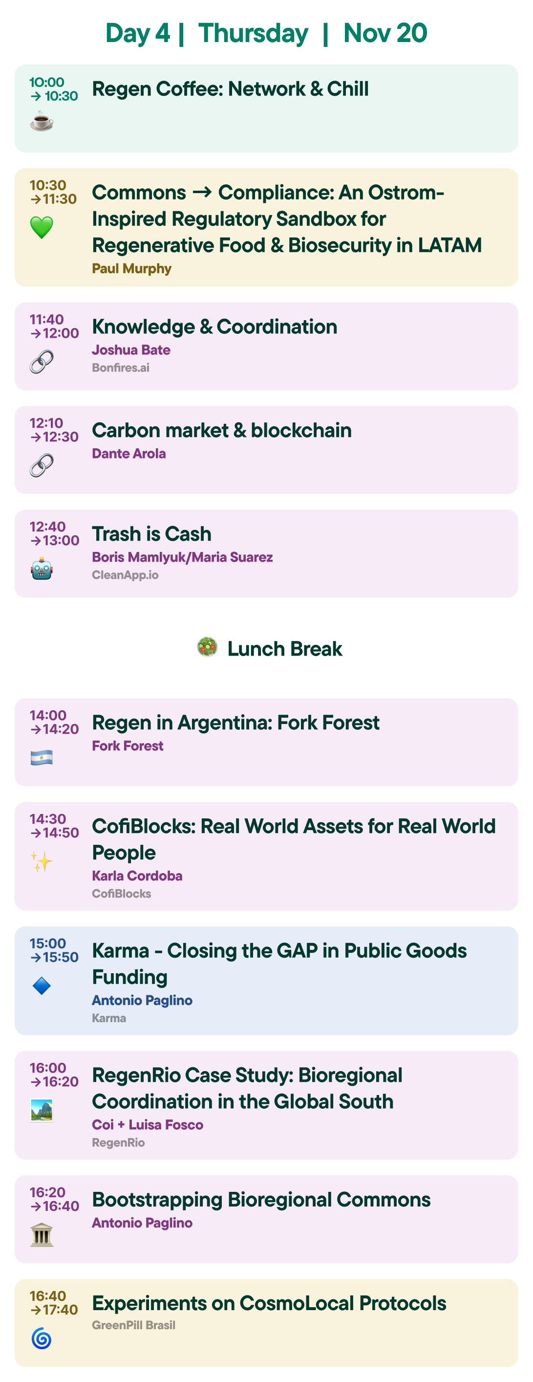 At Devconnect BA, the Regen Hub will reflect the vibrant Argentinian spirit of resilience and innovation, while holding space for global collaboration and reflection on the role of Ethereum in regenerating social, ecological, and economic systems.